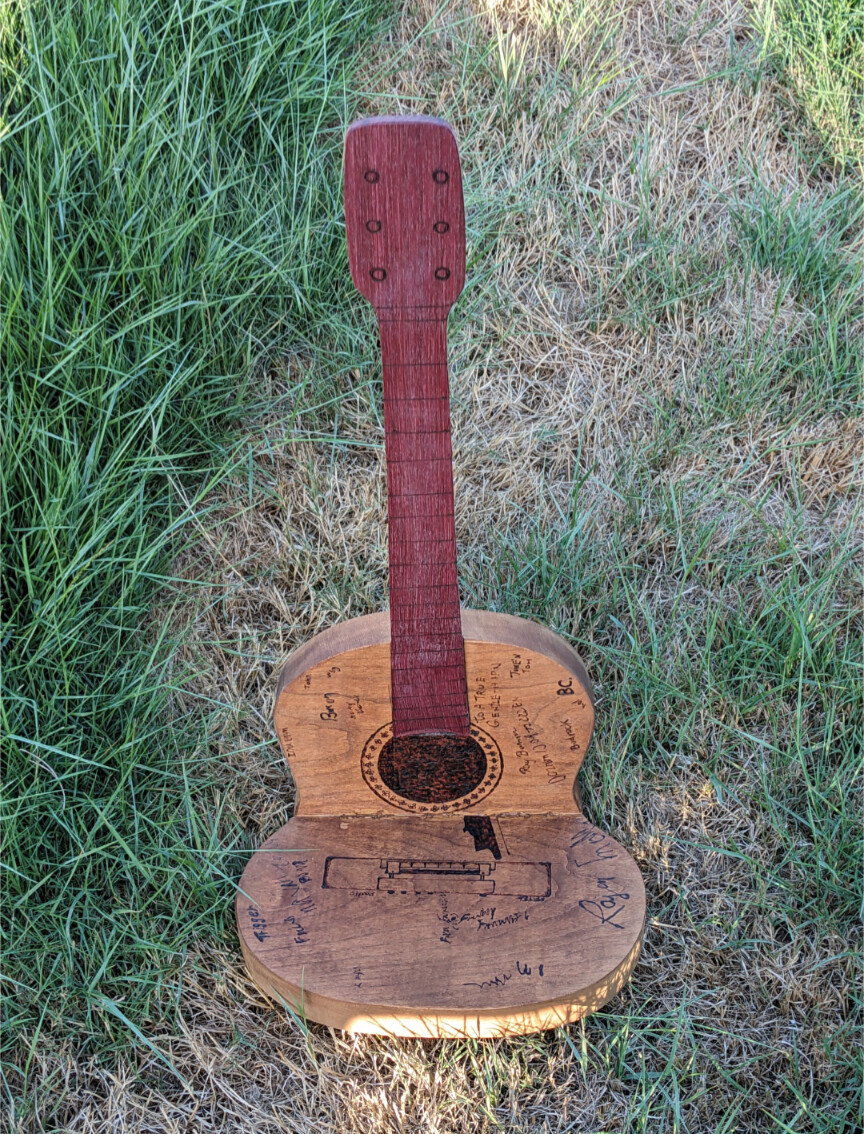 “Trigger” guitar plant stand for Willie Nelson chia pet